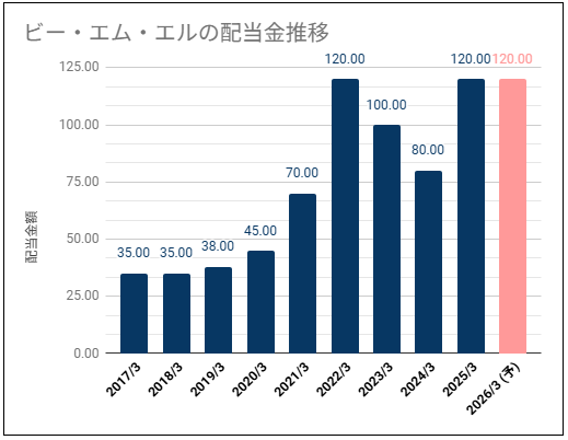 ビー・エム・エルの過去10年間の配当金推移を確認