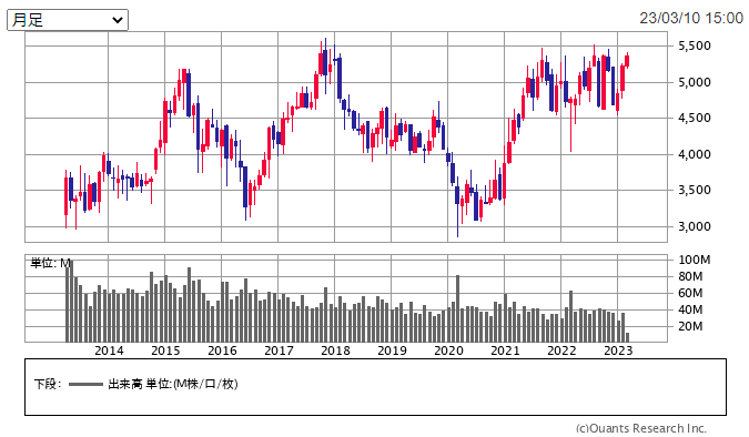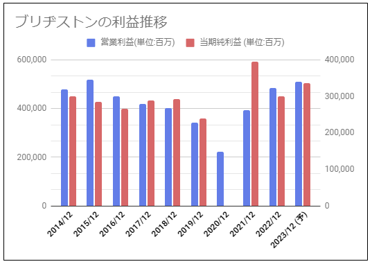 ブリヂストンの利益推移と株価チャートの動きを確認