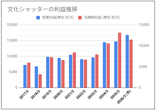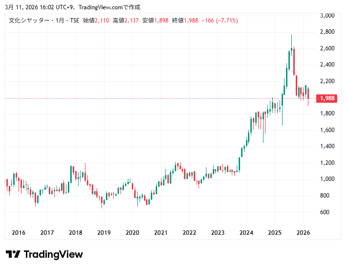 文化シャッターの利益と株価チャートの動きを確認