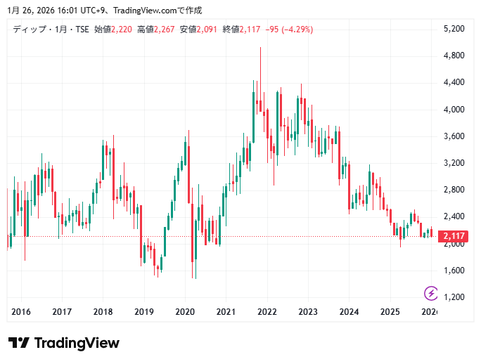 ディップの株価チャートの動きを確認