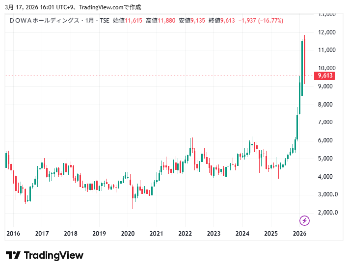 DOWAホールディングスは期末の一括配当を実施してます。3月末が決算ですね