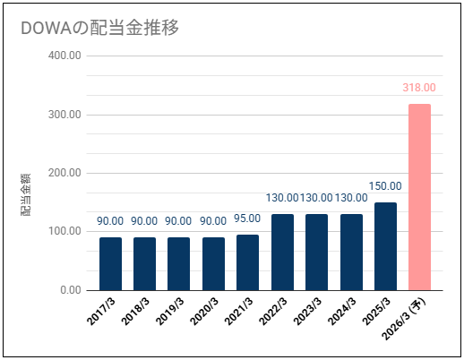 DOWAホールディングスの過去10年分の配当金推移を確認