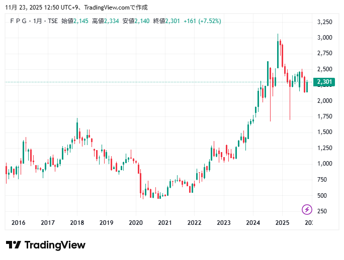 FPG10年間の株価チャートの動きです。
