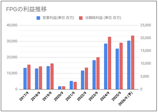 FPGの営業利益と純利益のグラフを確認していきます。