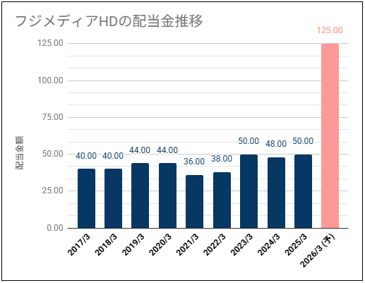 フジ・メディア・ホールディングスの過去10年間の配当金推移を確認