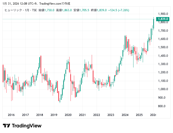 ヒューリックの年間配当金は67円予定、株価は1,839円なので年間配当利回りは約3.6%です。