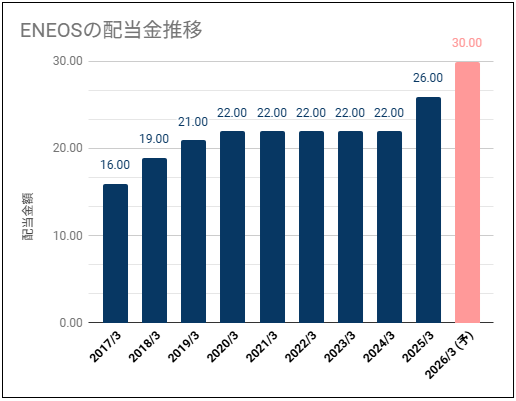 ENEOS(エネオス)(5020)の配当金診断。安定した配当推移で高めの利回り