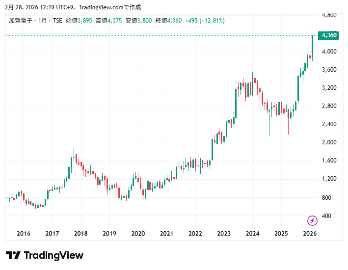 加賀電子の利益と株価チャートの動きを確認