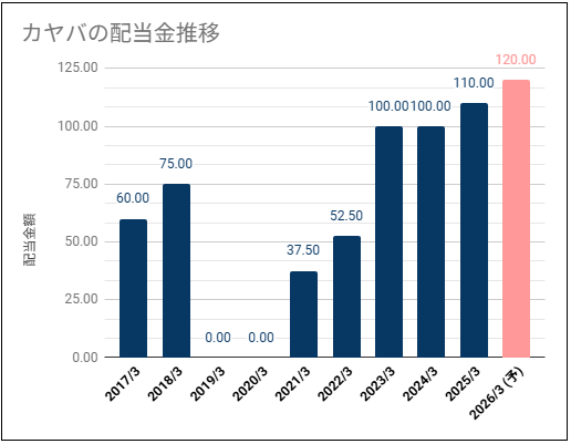 カヤバは年2回 (中間・期末) の配当を実施してます。3月末が決算です。