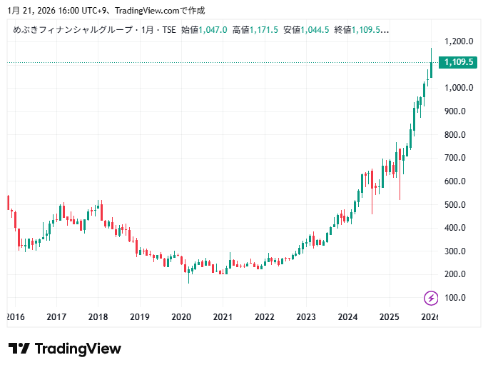 めぶきフィナンシャルグループの利益と株価チャートの動きを確認