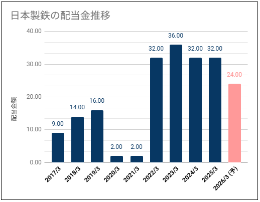 日本製鉄(5401)の配当金診断。高め利回りだが業績連動が強めの印象