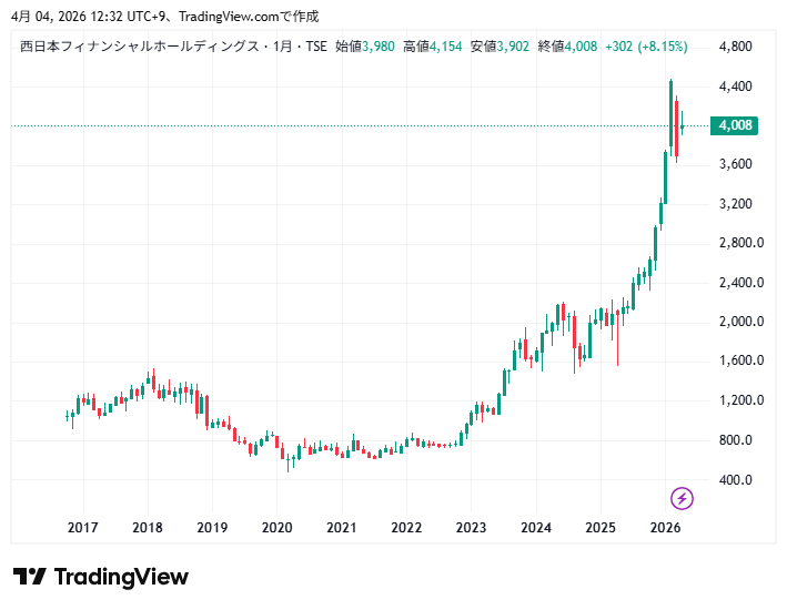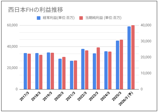 西日本フィナンシャルHDの利益と株価チャートの動きを確認