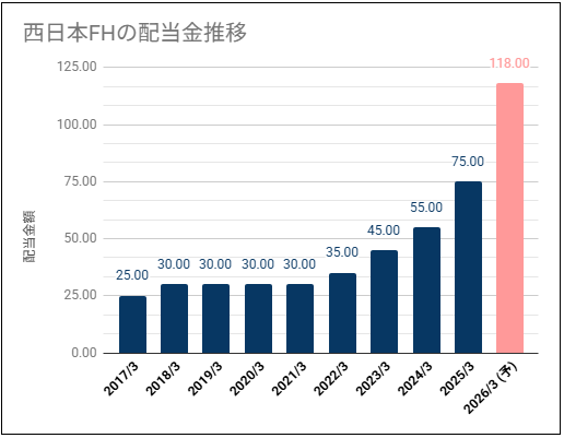 西日本フィナンシャルHDの過去の配当金推移を確認