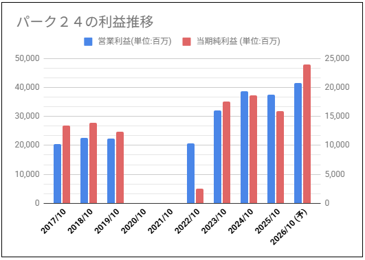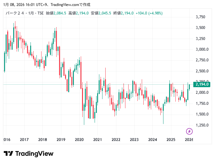 パーク24の利益と株価チャートの動きを確認