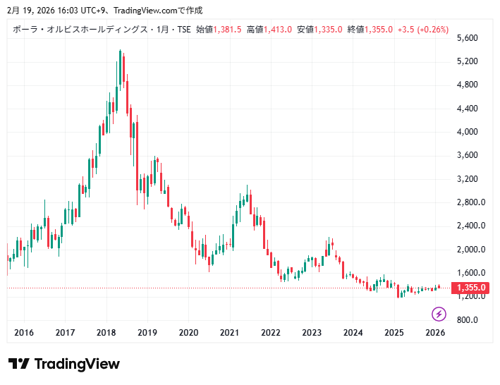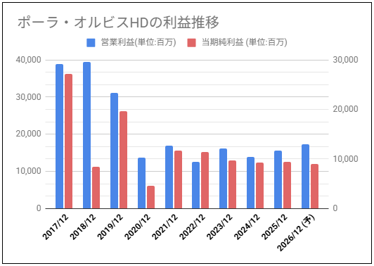 ポーラ・オルビスHDの利益と株価チャートの動きを確認