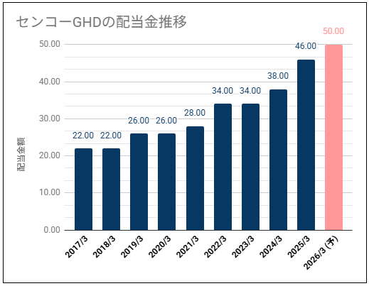 センコーHDは年2回 (中間・期末) の配当を実施してます。3月末が決算です。
