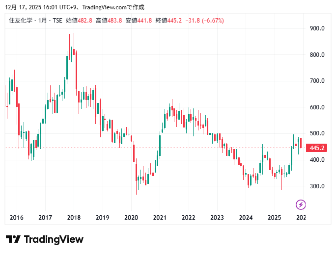 住友化学の株価チャートの動きを確認