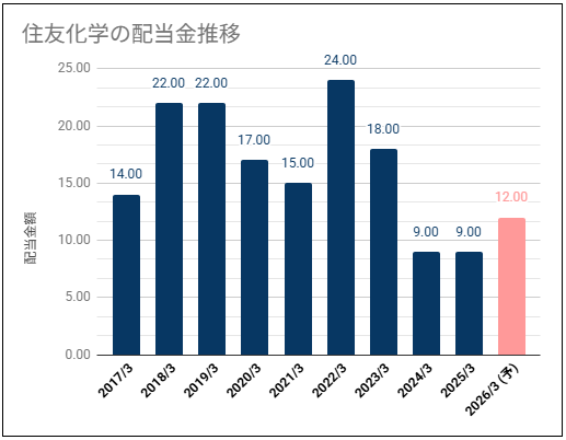 住友化学は年2回 (中間・期末) の配当を実施してます。日本株でメジャーな3月末が決算ですね