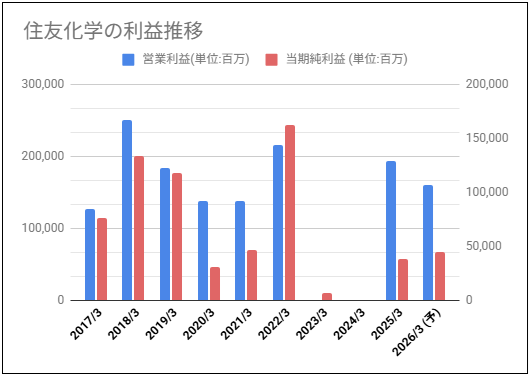 住友化学の利益と株価チャートの動きを確認
