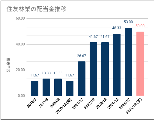 住友林業は年2回 (中間・期末) の配当を実施してます。12月末が決算です。