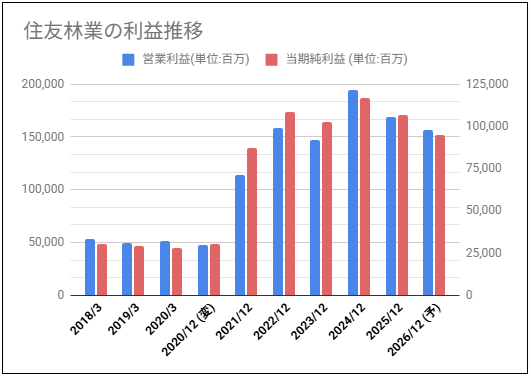 住友林業の利益と株価チャートの動きを確認