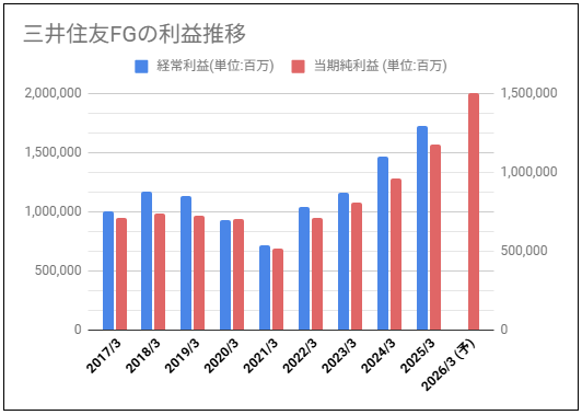 三井住友フィナンシャルグループの利益と株価チャートの動きを確認