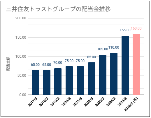 過去の三井住友トラストグループの配当金推移を確認していきます。
