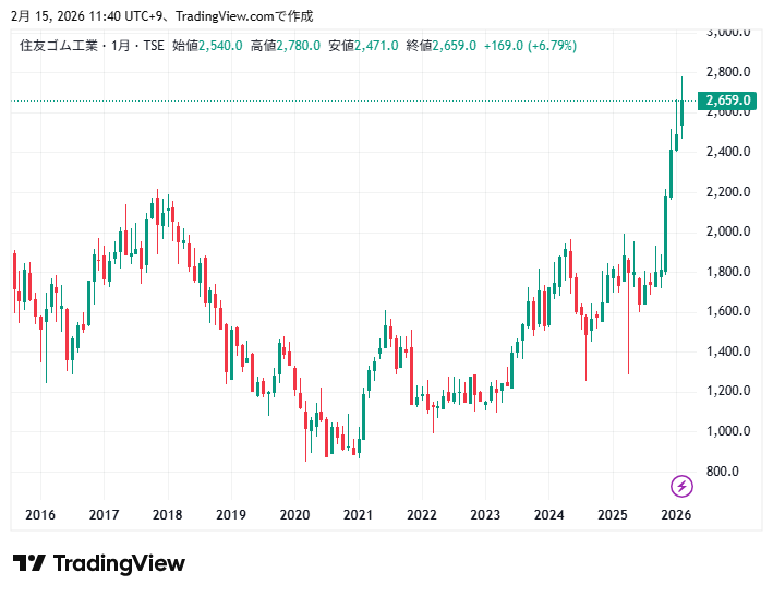 住友ゴム工業の株価チャートの動きを確認