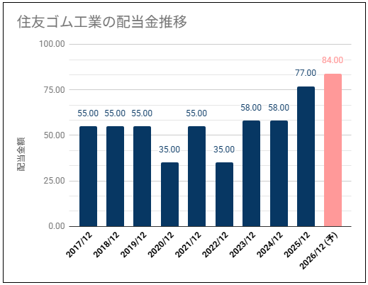 住友ゴム工業(5110)の配当金診断。高めの利回りだが不安定感のある配当推移