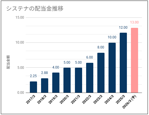 システナの過去10年間の配当金推移を確認