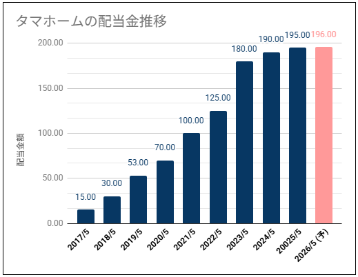 タマホームの過去10年間の配当金推移を確認
