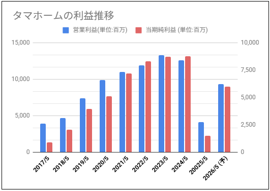 タマホームの利益と株価チャートの動きを確認