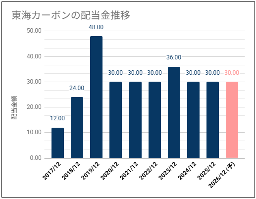 東海カーボンは年2回 (中間・期末) の配当を実施してます。12月末が決算ですね
