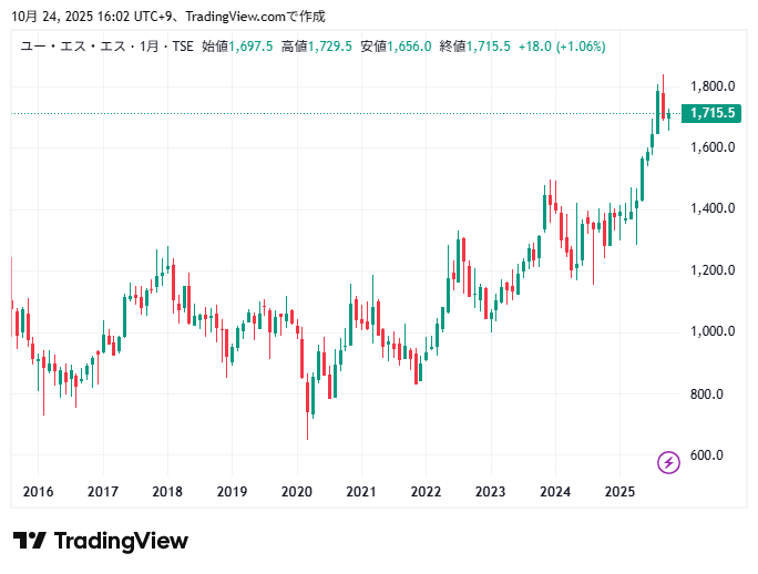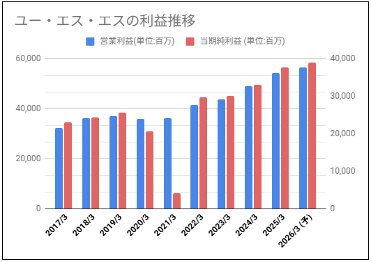 ユー・エス・エスの利益推移と株価チャートの動きを確認