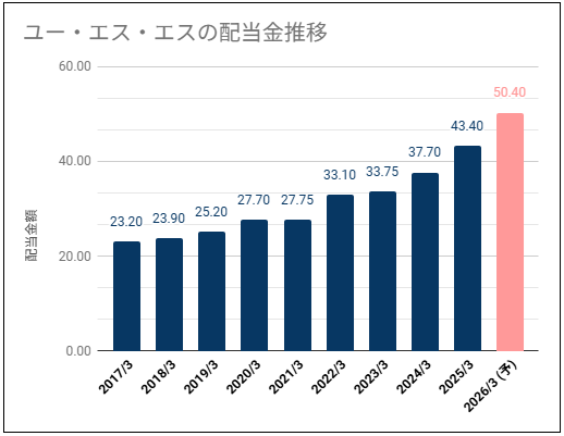 ユー・エス・エスの過去10年分の配当金推移を確認