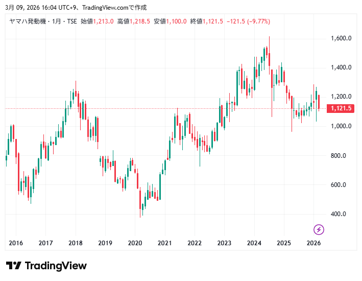 ヤマハ発動機の利益推移と株価チャートの動きを確認