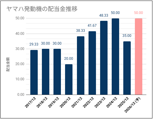 ヤマハ発動機の過去10年分の配当金推移を確認