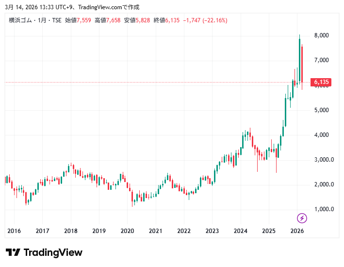 横浜ゴムの利益推移と株価チャートの動きを確認